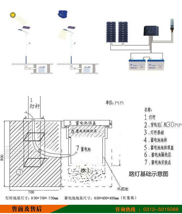 太陽能路燈led路燈燈頭W數、路燈燈桿高度、膠體蓄電池容量、太陽能電池板W數、照明時間,均可按照客戶要求定制,具體可溝通工作人員。