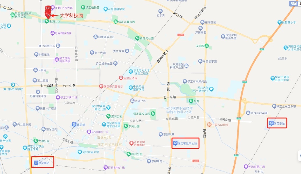 2、保定東站到大學科技園:乘坐游1到大學科技園站下車。市內打車45元左右。